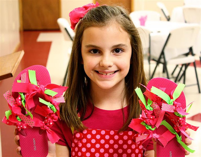 When we started planning Hallie's party we were trying to think of a craft to do and we decided on these ribbon flips flops. They turned out so cute!